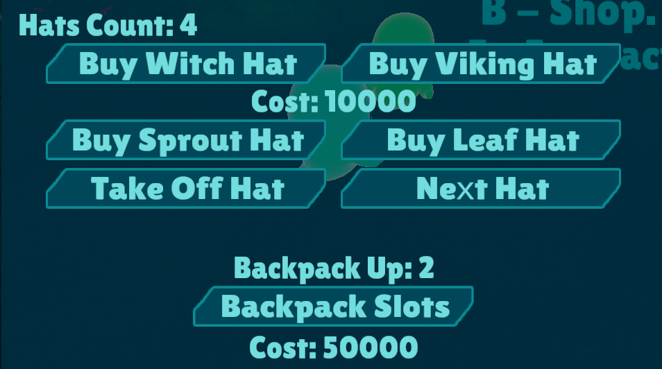 - The shop now allows you to purchase hats, remove a hat, and then equip the next one.
